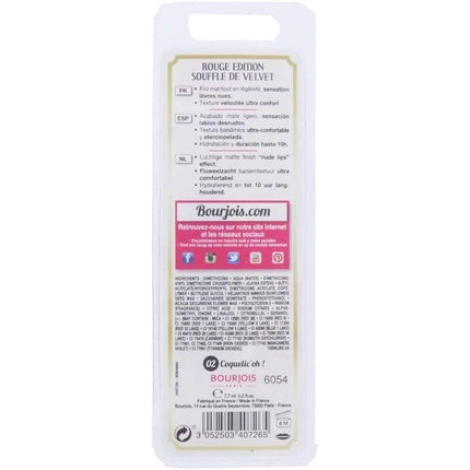 Bourjois Rouge Edition Soufflé De Velvet Lipstick Coquelic'Oh 002