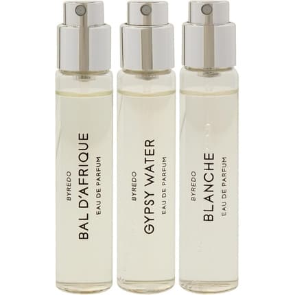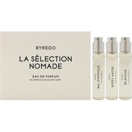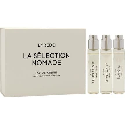 Nom du parfum : Byredo La Sélection Nomade Gift Set : Bal d'Afrique & Blanche - Une invitation au voyage olfactif