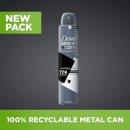 Découvrez Dove Men+Care Advanced Invisible Dry, un anti-transpirant en aérosol qui vous offre une protection invisible contre la transpiration pendant 48 heures. Sa formule avancée ne laisse aucune trace blanche sur vos vêtements et vous laisse une sensation de fraîcheur tout au long de la journée.