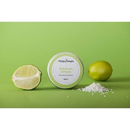 Découvrez notre déodorant végétalien HappySoaps au parfum envoûtant de noix de coco et de citron vert. Ce déodorant naturel de 50 g vous assure une protection efficace et longue durée contre les odeurs corporelles, tout en respectant votre peau et l'environnement.