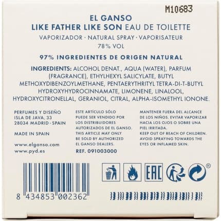 Nom du parfum : Like Father Like Son Eau de Toilette Spray 125ml – El Ganso : Un héritage parfumé
