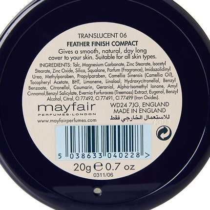 Mayfair Feather Finish 06 Translucent Shade Face Powder Mirrored Compact 20g
